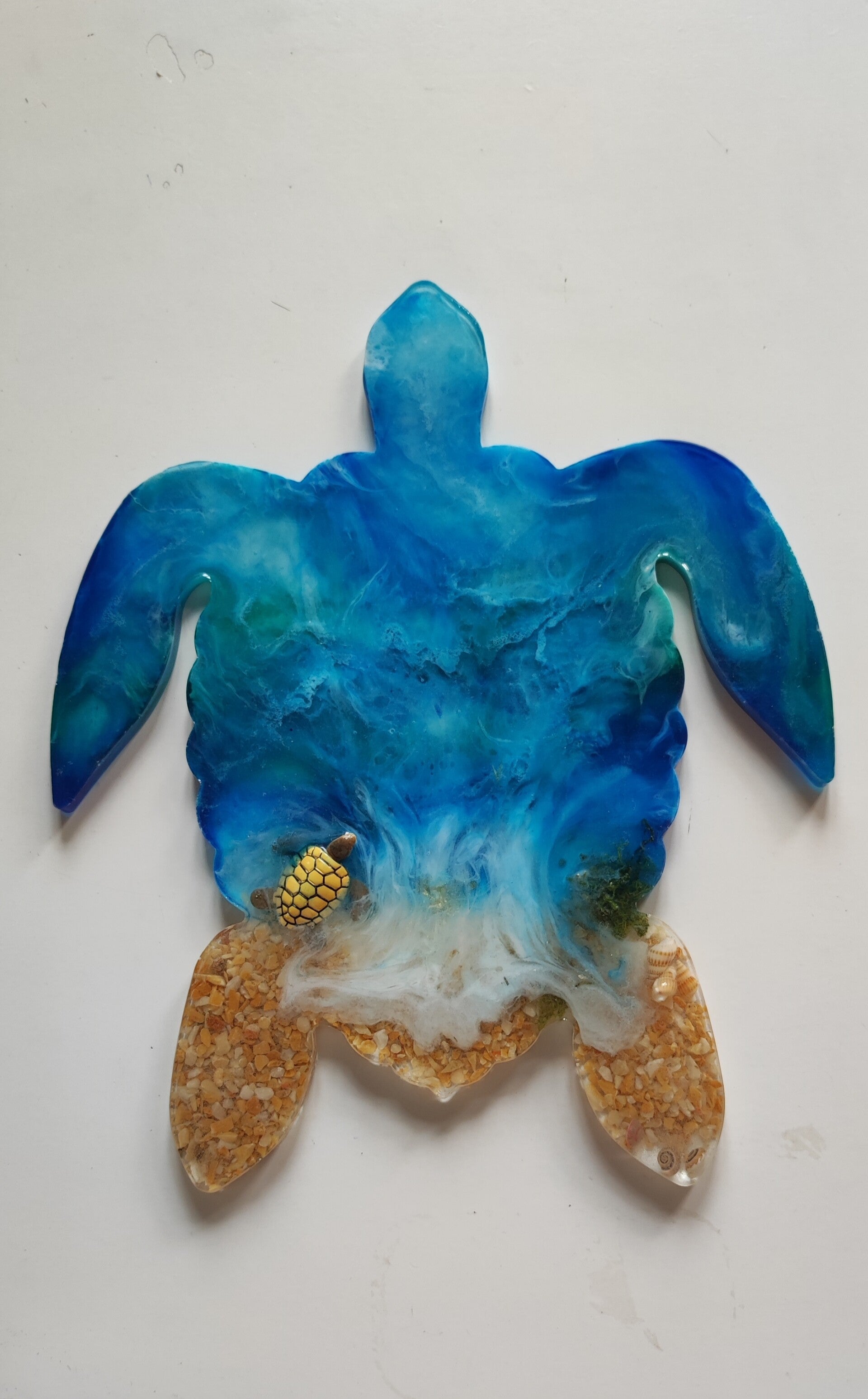 🐢 Plateau décoratif en forme de tortue – pièce unique en résine époxy 🐚